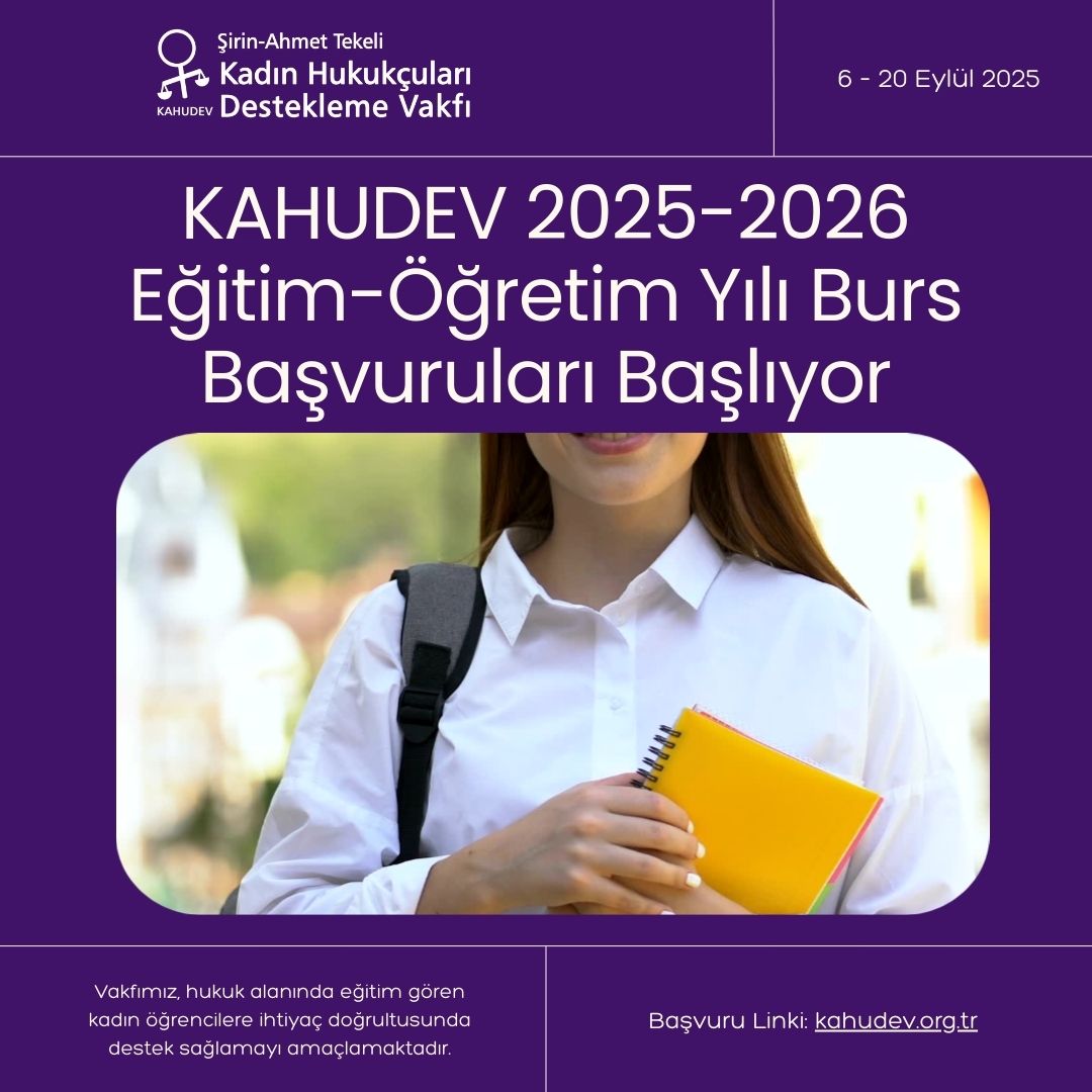 Şirin-Ahmet Tekeli Kadın Hukukçuları Destekleme Vakfı (KAHUDEV), 2025-2026 eğitim-öğretim yılı burs başvurularını 6 – 20 Eylül 2025 tarihleri arasında kabul edecektir.